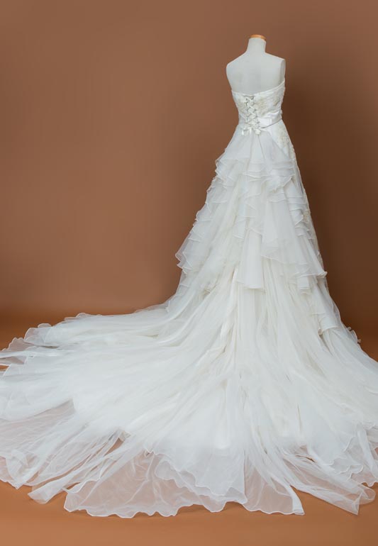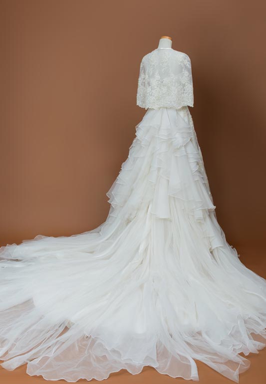 - 肩周りの露出度を抑えた上品な仕立てです。