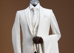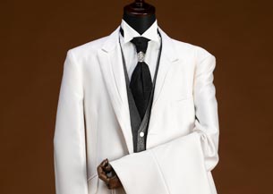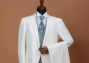 煌びやかな印象でシャープに着こなせるホワイトタキシード