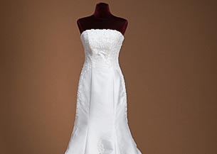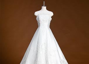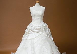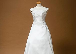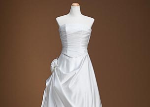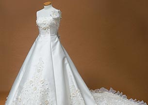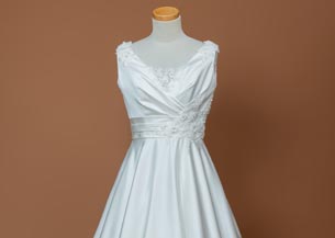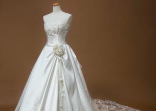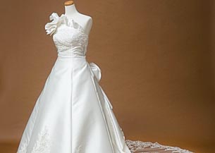 上品なサテン生地が、大人綺麗な花嫁様を演出してくれるAラインドレス