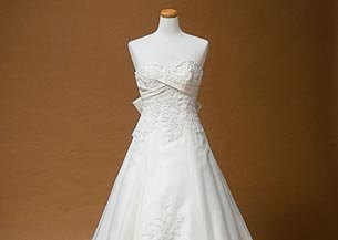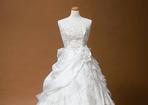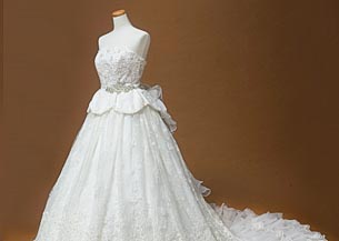ウエストからふわっと広がる。ぺプラムが特徴のプリンセスラインのウエディングドレス。