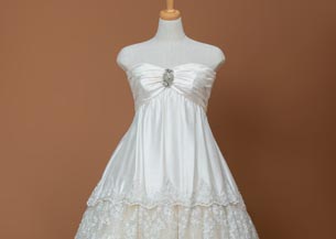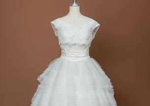 カジュアルなパーティーにもオススメ。正統派から大胆に。お色直しでミニドレスに変身できるティアードドレス。