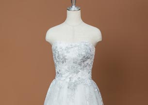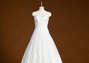 肩周りの露出を抑えた上品で可憐な印象のAラインドレス