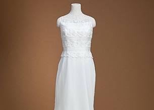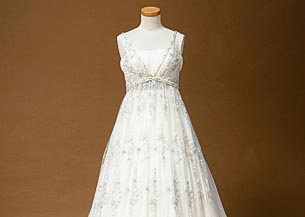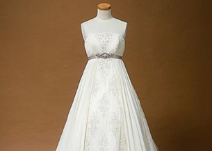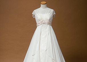 ナチュラルな雰囲気のエンパイアライン。レースとジョーゼット生地使用の柔らかい雰囲気の1着です。