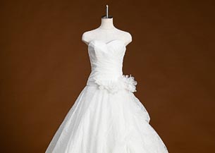 清楚な花嫁にふさわしい。細やかな光沢のあるスパークオーガンジーを使用した特別感のある1着。