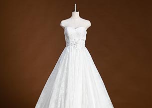 デコルテが綺麗に見えるハートカットのドレス。レースをふんだんに使用した大人の女性にふさわしい気品あふれる1着。