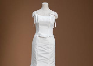 シンプルなデザインが女性らしさを際立たせる。ボリューム控えめクラシカルで正統派な印象にしたいという方にオススメの1着。