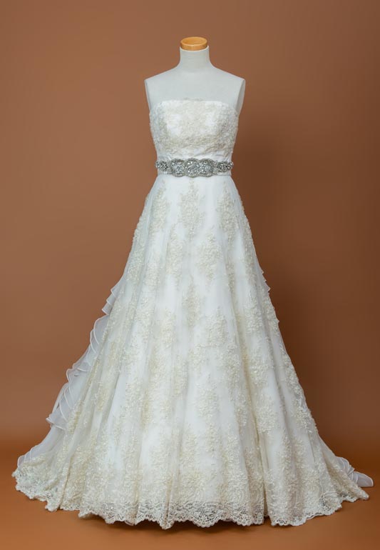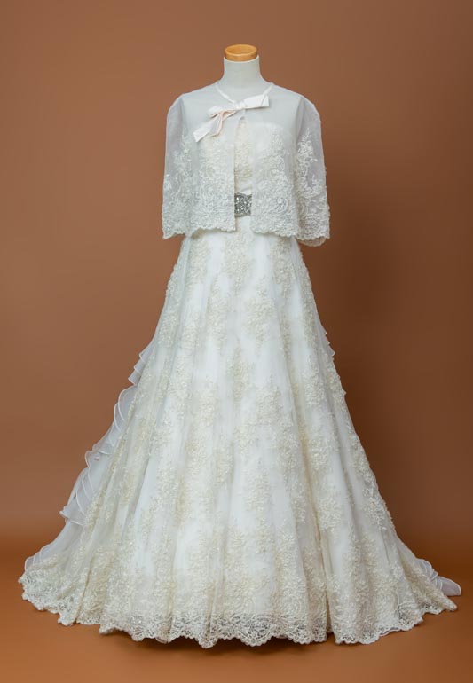クラシカルでエレガントな印象のチュールレースのAラインドレス