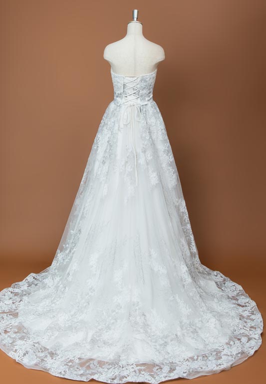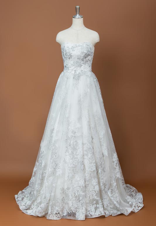 カジュアルウェディングやアットホームな雰囲気にぴったり!フラワーレースのナチュラルAラインドレス