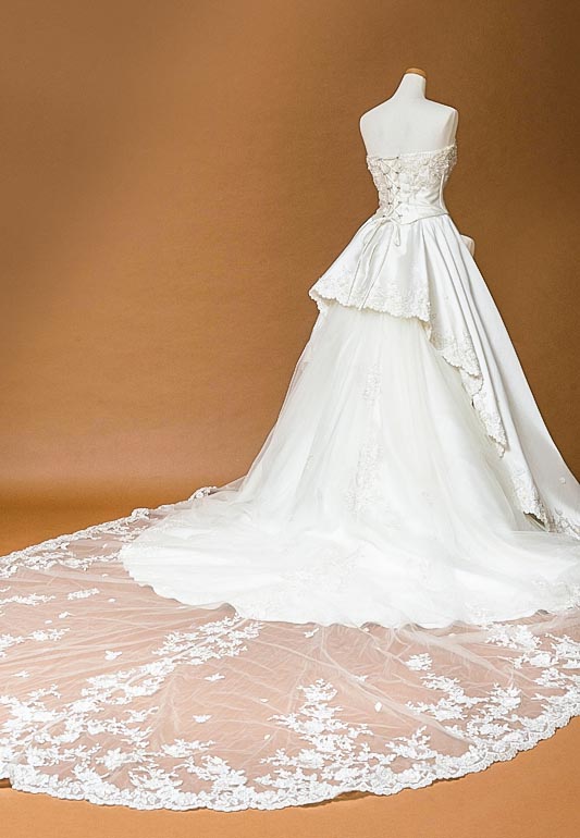 - 肩布がセットになっているので、ビスチェが苦手な方にもオススメの一着です。後ろのトレーンも付け外し可能になっており、柔らかな透明感のあるチュールのトレーンになっております。ドレス本体のトレーンにもレースやお花が散りばめられていてとても綺麗ですが、さらにその上にチュール素材のロングトレーンを重ねて着て頂くのがオススメです。