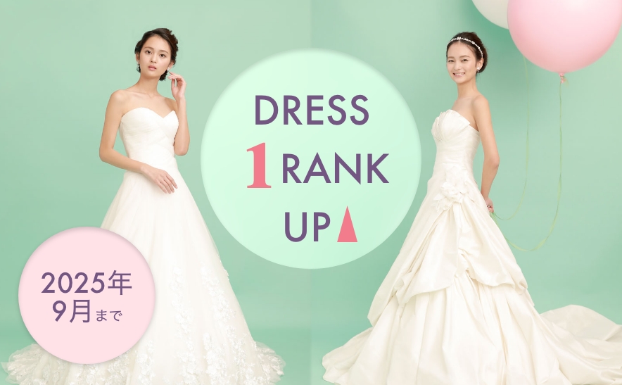 2025年9月末までに結婚式をされる方に、ウェディングドレスのランクアップを無料でプレゼントいたします。
